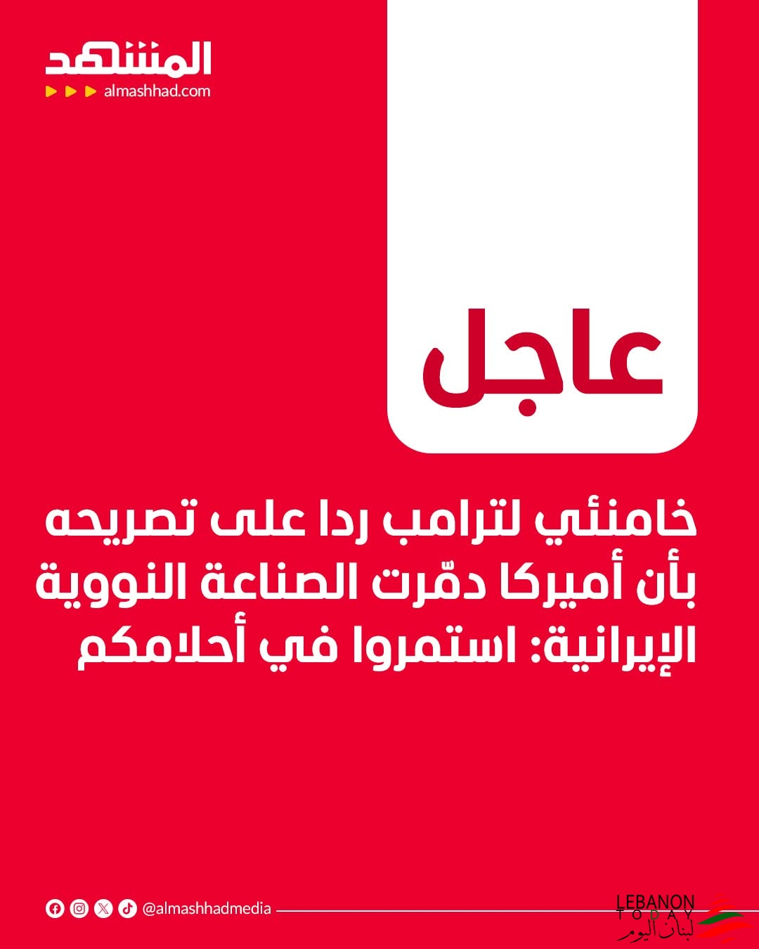 خامنئي لترامب ردا على تصريØÙ‡ بأن أميركا دمّرت الصناعة النووية الإيرانية: استمروا ÙÙŠ Ø£ØÙ„امكم