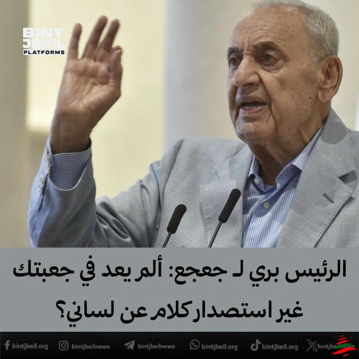 مصادر الرئيس بري ردًا على كلام جعجع: من أين لك هذا الكلام الذي نسبته إلي؟ ألم يعد ÙÙŠ جعبتك غير إستصدار كلام عن لساني والجواب إليك!