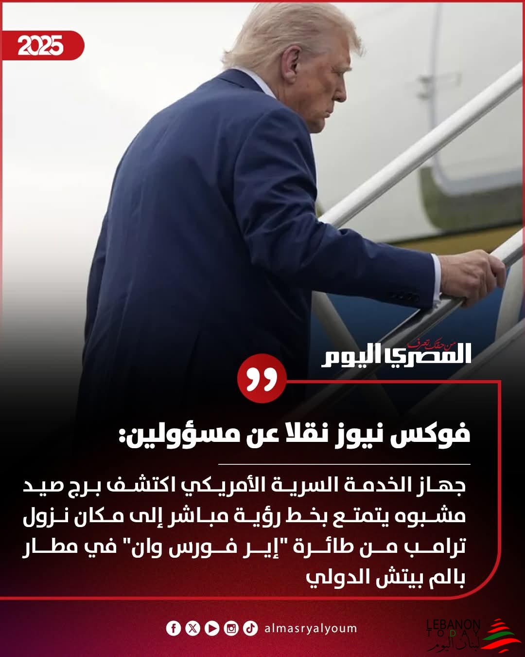 Ùوكس نيوز نقلا عن مسؤولين: جهاز الخدمة السرية الأمريكي اكتش٠برج صيد مشبوه يتمتع بخط رؤية مباشر إلى مكان نزول ï